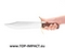 Vanaf de zijkant van het mes is de handgreep afgewerkt met een massieve, messing S-vormige kruisbeschermer die de hand beschermt tegen wegglijden op de snijkant.