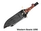- Western Bowie is een groot mes geïnspireerd op modellen die worden gebruikt in klassieke Amerikaanse westerns.